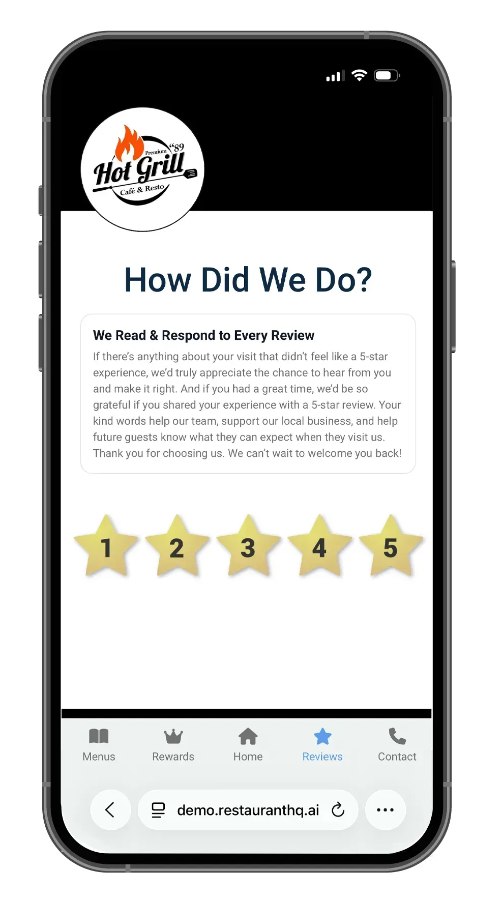Prevent bad reviews before they get posted on Google. If a customer has a negative experience and gives a low rating, a popup menu will appear and allow the customer to give you, the owner, the feedback and make the situation better instead of posting directly online. Positive reviews will get redirected immediately to Google to boost your online reputation.